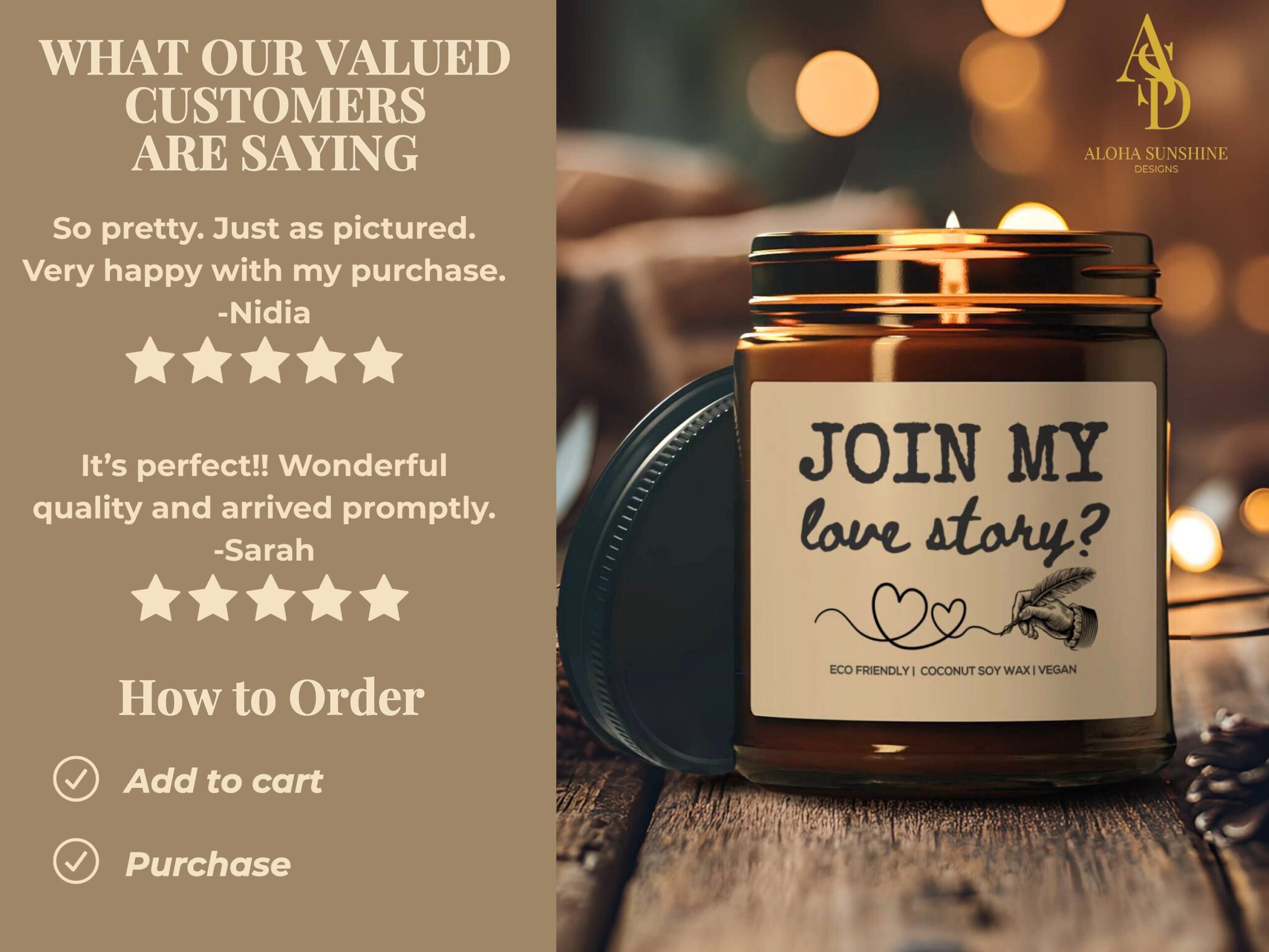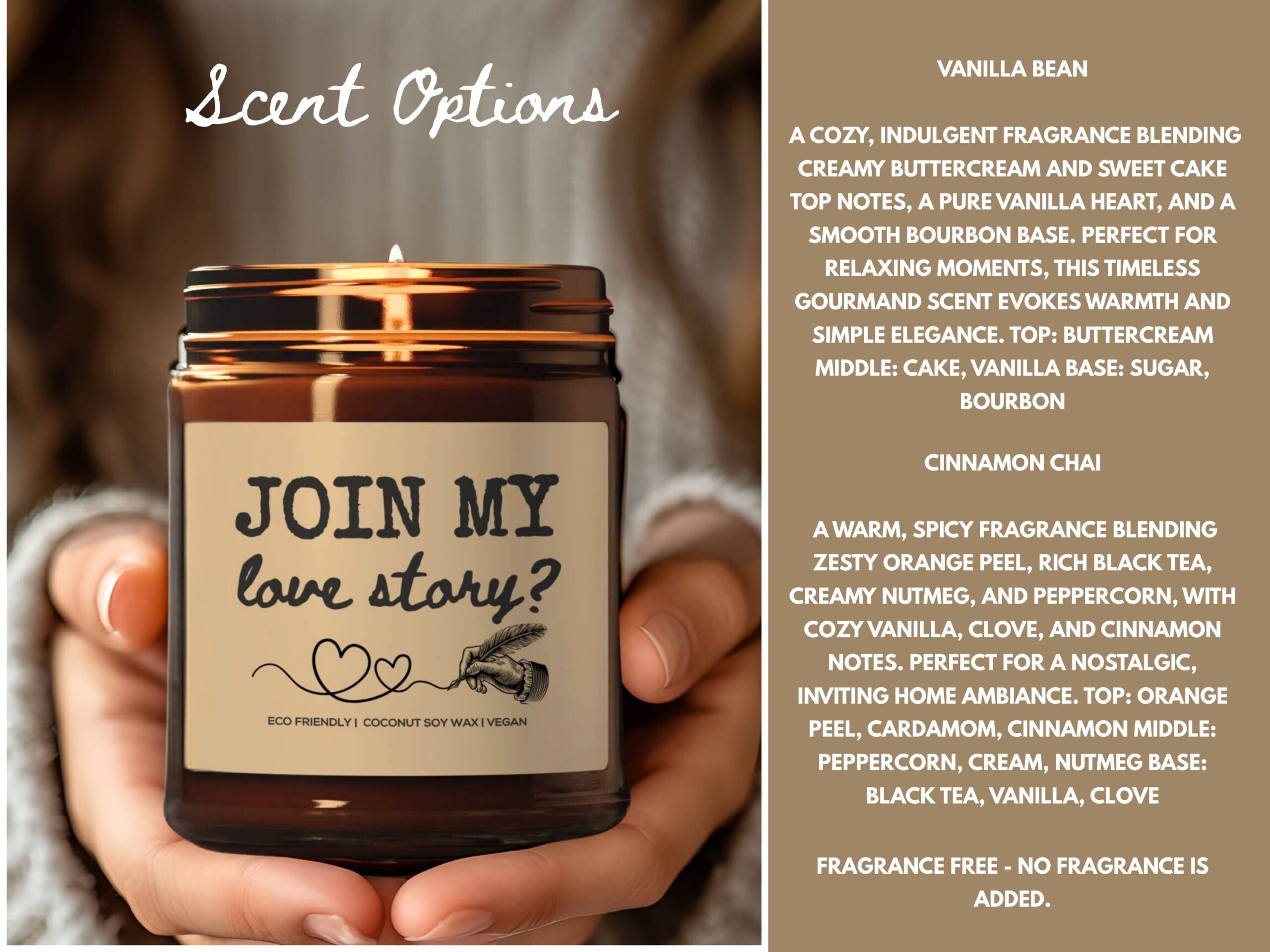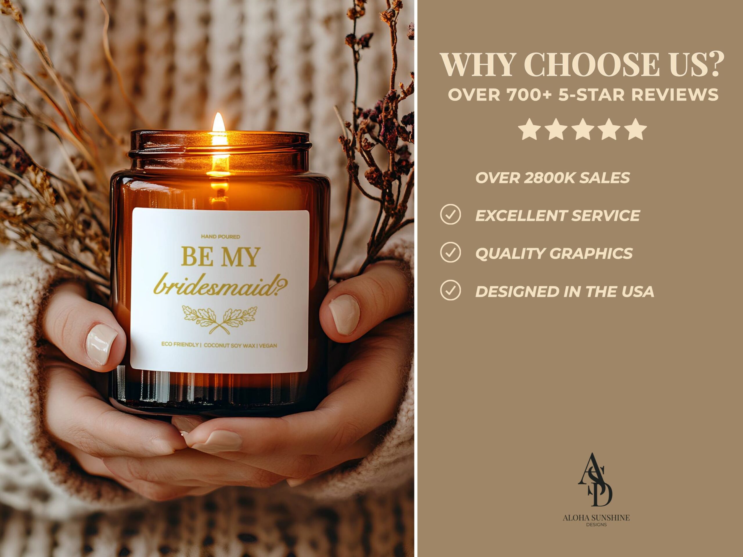 Ask your bridesmaids in style with our amber jar candles, available in 4 oz and 9 oz sizes with a chic gold lid. Featuring ‘Join My Love Story?’ or ‘Be My Bridesmaid?’ labels, these candles make the perfect bridesmaid proposal gift for your wedding party. Order today!