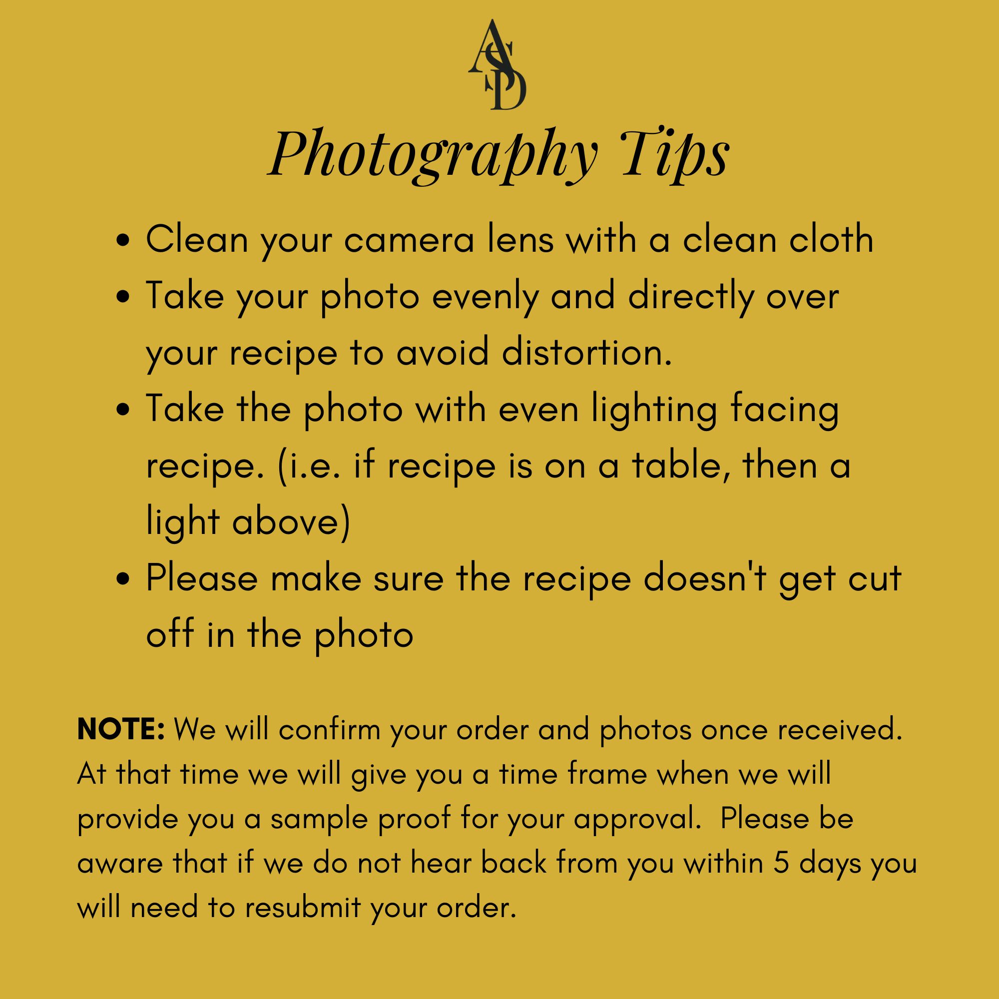 • Note: The quality of the photo (good lighting & taking it directly above the recipe without distortion) will help the outcome.